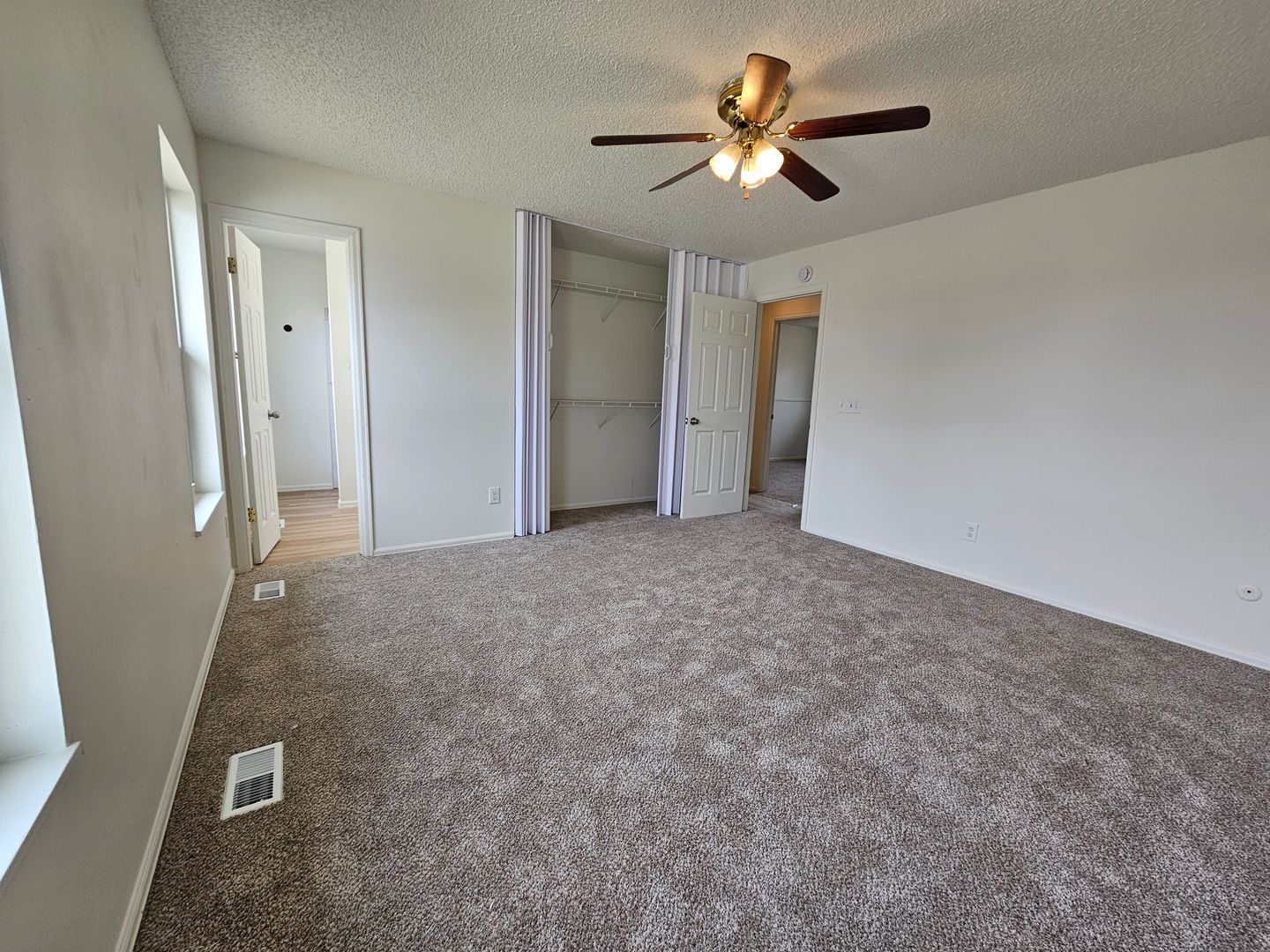 The top floor has 3 large bedrooms, big and tall closets in each room, with the primary having an en suite bath. There is a hall bath between the other bedrooms. Lots of natural light flows in through the large windows throughout the house.